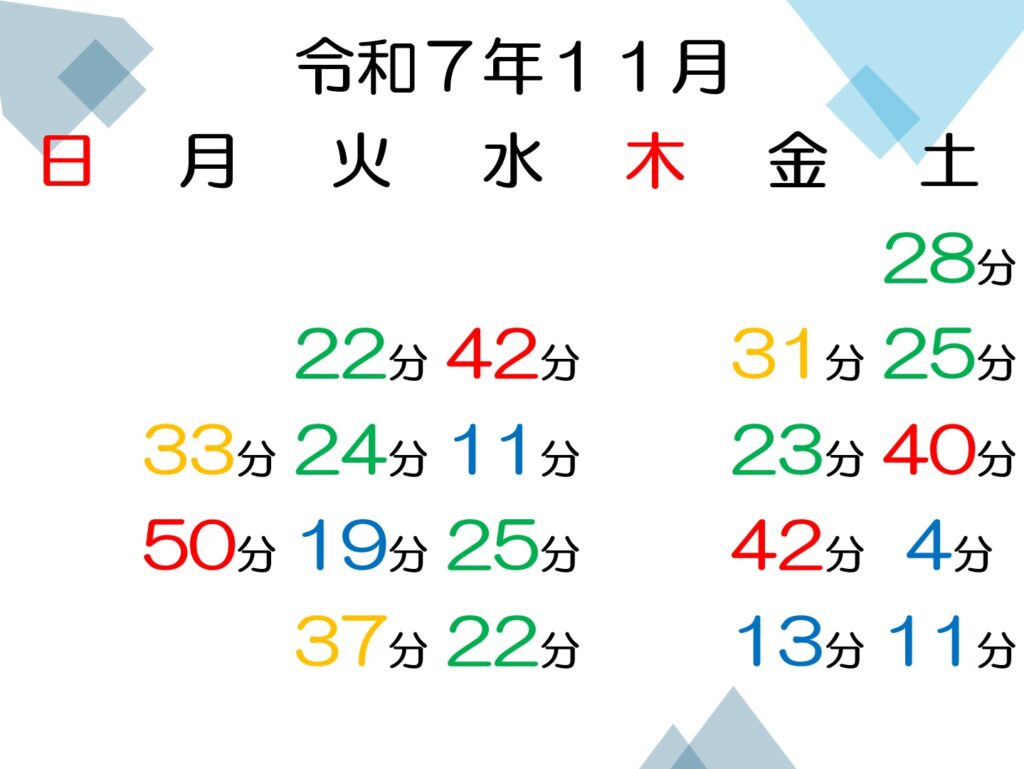 投稿日: 2025年11月30日11月の待ち時間状況 11月の診察までの待ち時間の平均は以下のようでした。今月は予防接種を受けられる方が多く全体的に比較的待ち時間がかかりました。月末の待ち時間が短いのはこれまでと同様でした。